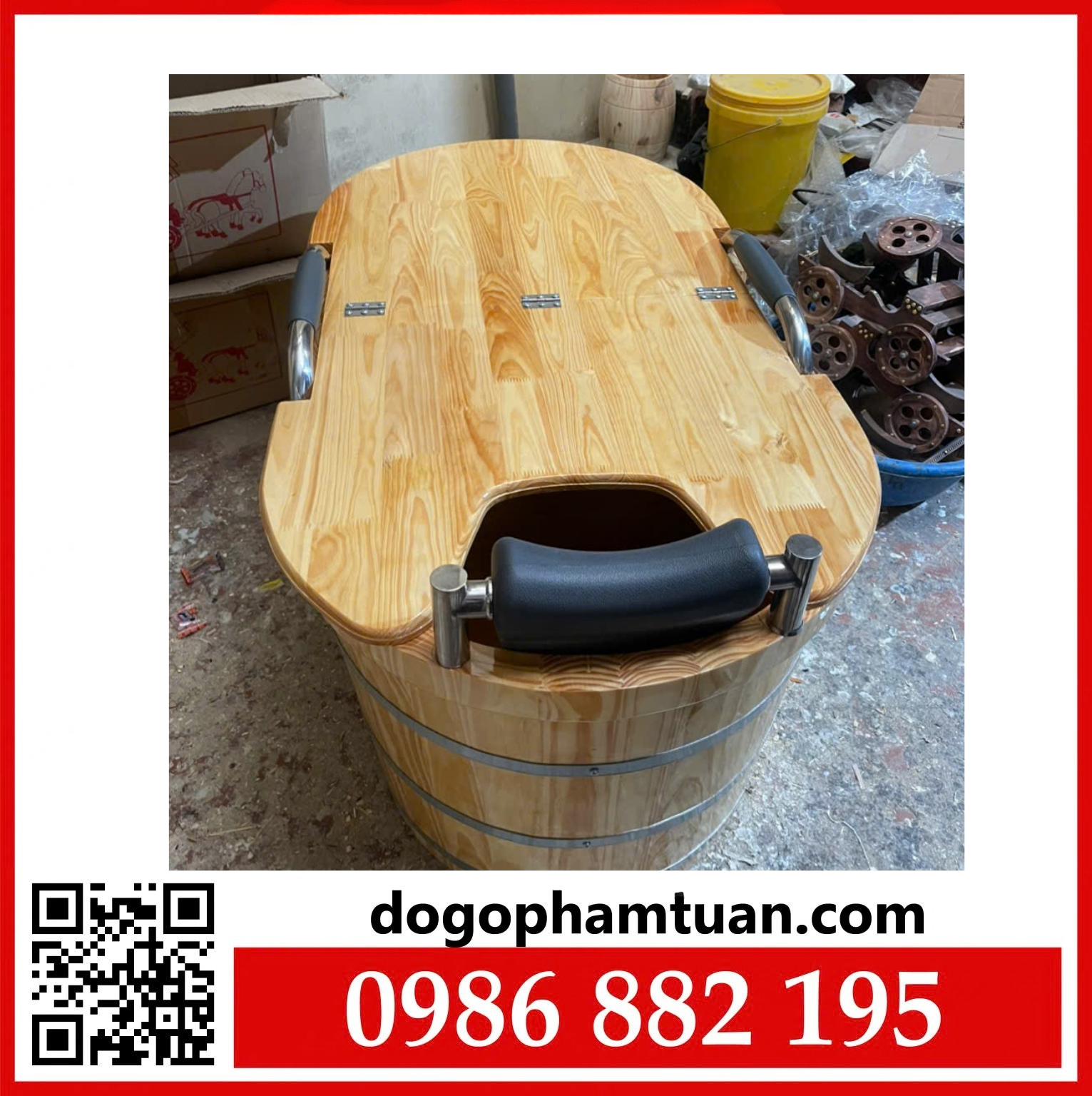 Bồn tắm gỗ cao cấp được sản xuất tại Cơ sở sản xuất Phạm Tuân, làm từ gỗ tự nhiên chắc chắn, phù hợp sử dụng tại spa, nhà thuốc đông y hoặc gia đình.